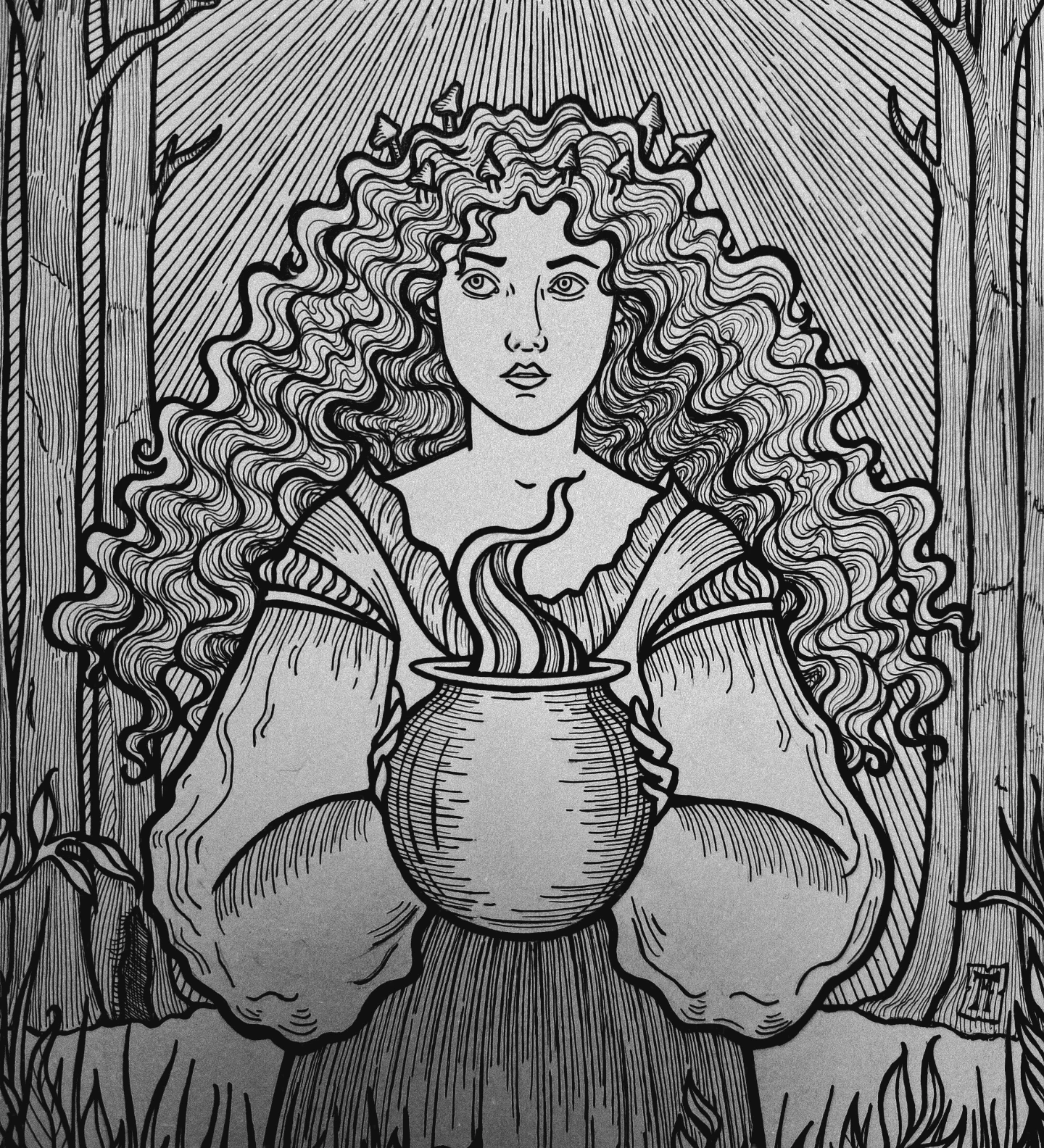 Loar (lune en breton). A la lueur de la lune, la jeune fille marchait dans les bois, cherchant le lieu le plus propice pour y déposer son chaudron fumant et commencer à murmurer ses incantations…
