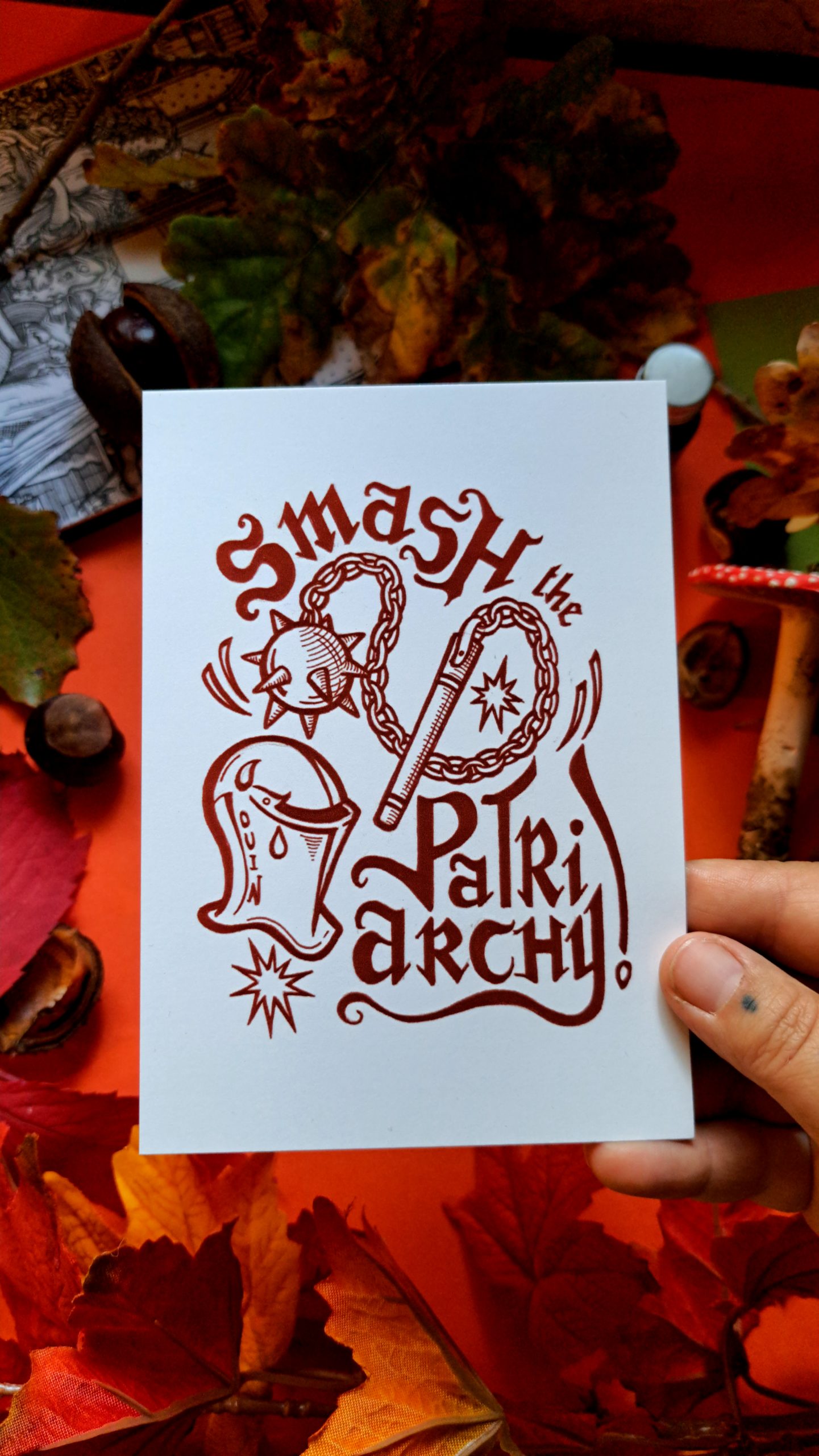 Et voici un lot avec : un tirage A5 de l’illustration « Brewing Potion with Male Tears », une carte postale « Smash the Patriarchy », un marque-page « Starter Pack Ouin Ouin » et un sticker holographique « Smash the Patriarchy »!