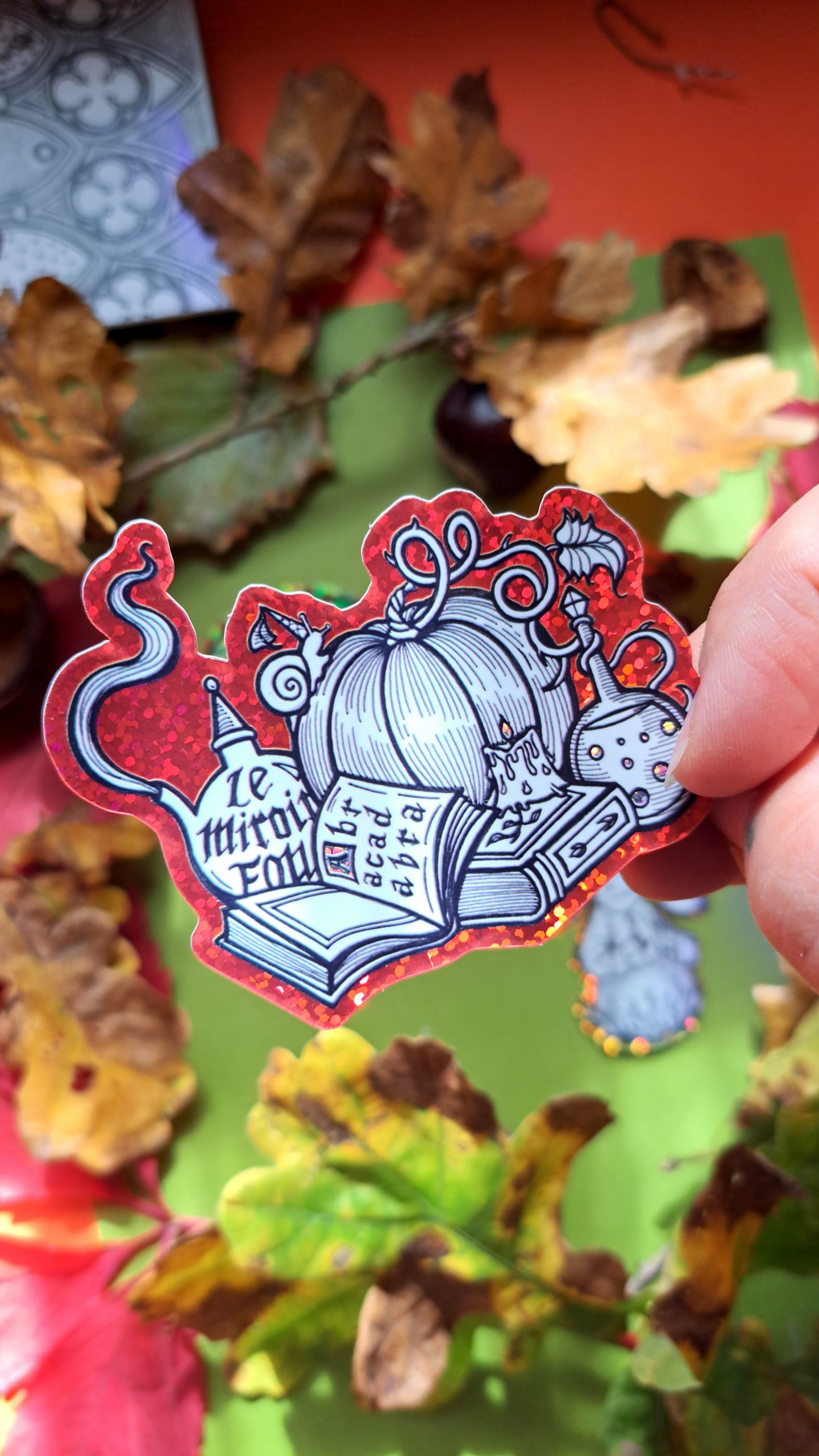 Si vous commandez juste un lot de stickers et que vous voulez éviter de payer 6€ de FDP (mes fdp sont forfaitaires), écrivez-moi à lemiroirfougmail.com avec en sujet « Lot de 5 stickers automnaux », votre nom, prénom et adresse postale, je vous contacterai par la suite, le paiement se fera par virement bancaire par la suite quand je m’occuperai de votre commande. Les stickers à l’unité sont à 3,50€.