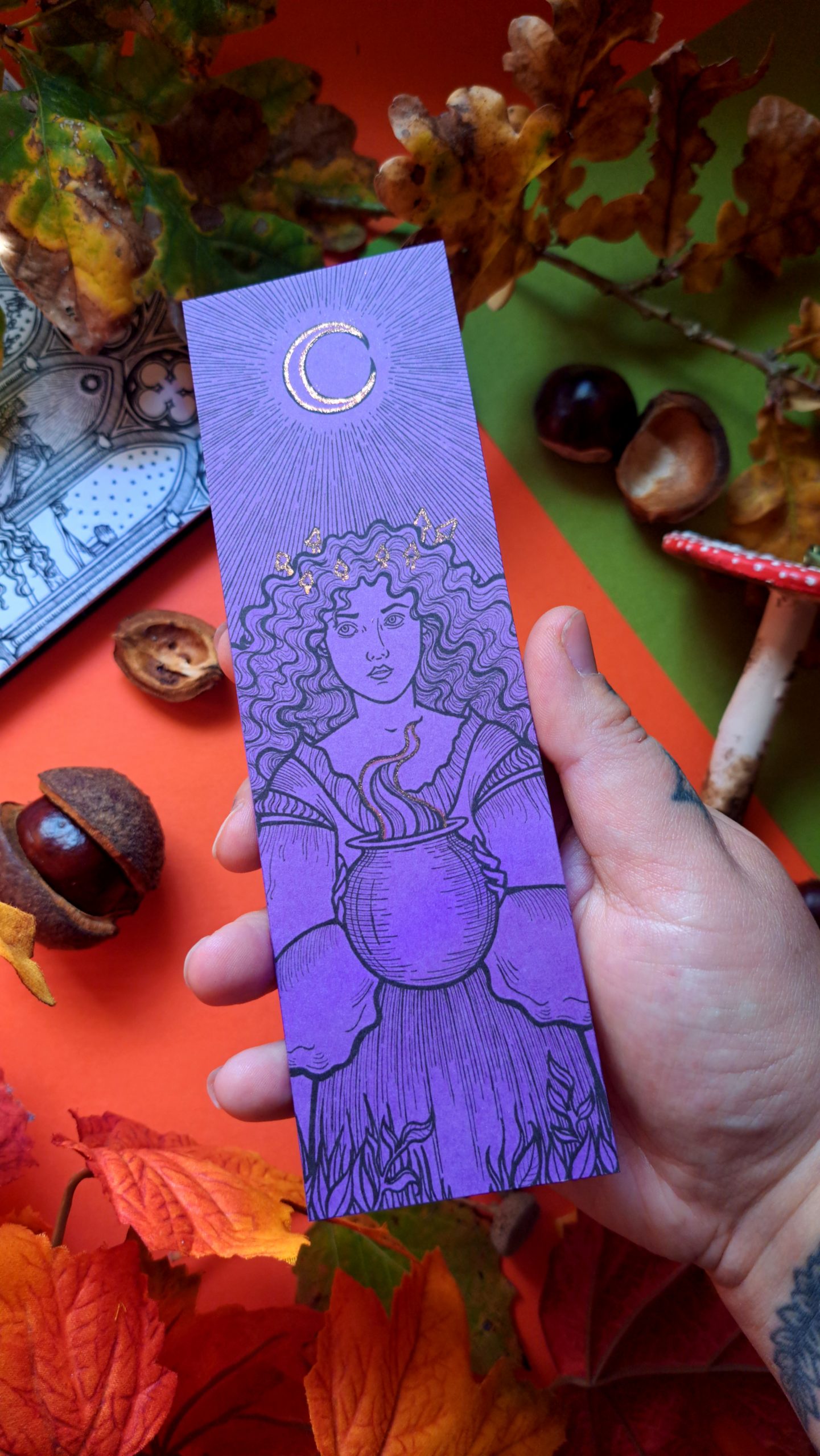 Pour accompagner vos lectures, les offrir ou même les encadrer, je vous propose un lot de 4 marque-pages colorés avec une touche de paillettes sur la thématique des sorcières, ce sont des extraits de mes illustrations, j’espère qu’ils vous plairont!